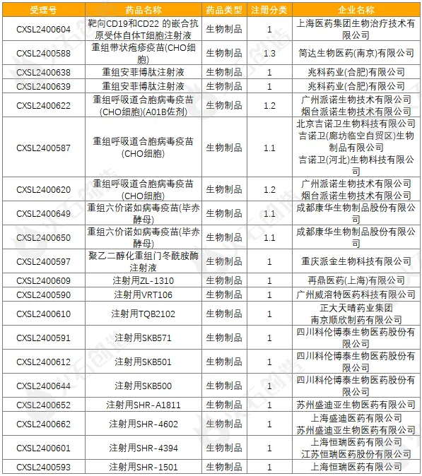 表4 2024年9月创新药临床申请承办情况(以部分生物制品为例)