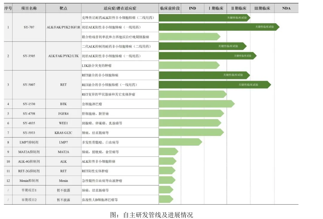 目前,公司的二代ALK抑制剂CT-707已经于国内报产并获得CDE受理,以及公司三代ALK抑制剂SY-3505正处于临床三期(国内收个进入临床三期的三代ALK抑制剂),组合布局优势显著。