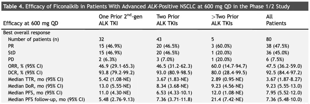 2024年初,SY-3505二线治疗ALK阳性NSCLC的I/II期数据在JTO发表:接受600mg QD的80例可评估患者的ORR为47.5%,mPFS为7.95个月;在基线伴可测量颅内病灶的32例患者中,颅内ORR为37.5%,中位DoR为9.2个月;这一数据也让投资者看到了其有望媲美劳拉替尼疗效的潜力。