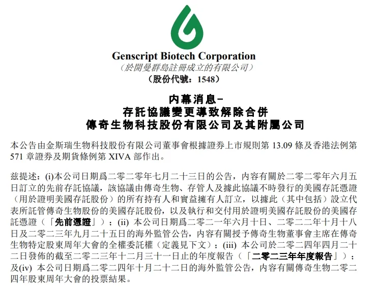 另根据新协议,自2024年10月18日起,传奇生物的资产和负债将不再合并入金斯瑞生物的财务报表。预计解除合并将对金斯瑞生物截至2024年12月31日的合并财务报表会产生重大影响。