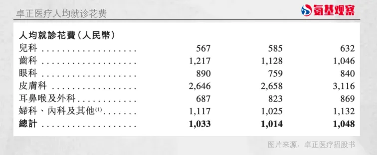 作为对比,根据国家卫健委和弗若斯特沙利文的数据,2023年我国平均每次门诊支出为公立机构245元、私立机构279元,卓正就诊的次均价格远超平均。