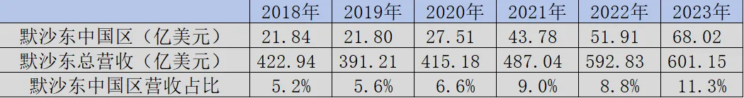 以整体来看,这九家公司中国区的营收总和呈显著增长态势,由2018年的172.99亿美元,增至2023年的313.98亿元,年化复合增长率约为12.5%。尤其是2018—2021年中,九家MNC的营收增速更是一度高达18.6%。
