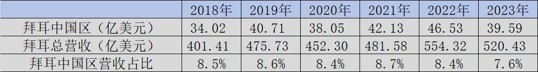 对于拜耳来说,中国区是一块极为重要的市场,其在总营收中的占比长时间保持在8.5%左右。
