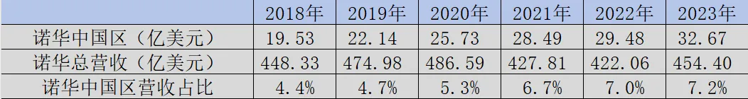 过去五年中,诺华是对中国区权重提升最高的MNC公司。在2018年的时候,诺华中国区仅占总营收4.4%,但至2023年中国区已经成为诺华营收增速最快的地区。