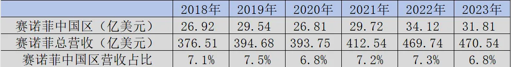 这些年来,赛诺菲中国区的表现始终不温不火,在全球营收持续增长的情况下,赛诺菲中国区占比已经下降至6.8%。