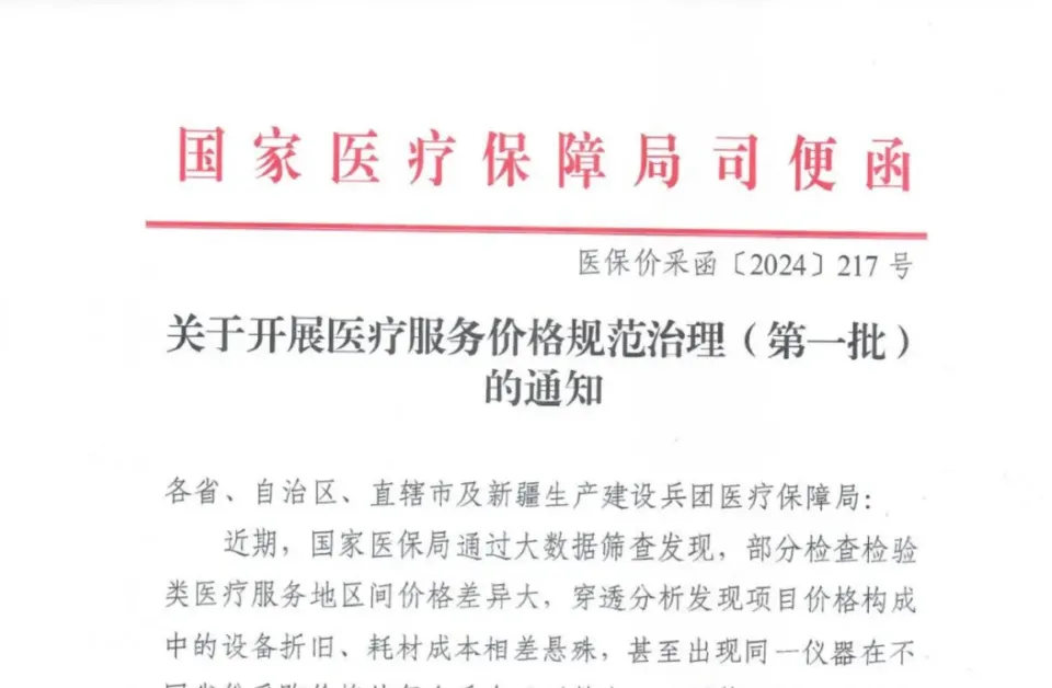 根据该通知显示,此次进行价格治理的原因是国家医保局通过大数据筛查发现的部分医疗服务存在的地区间价格的偏差,重点提到检查检验类项目价格构成中的设备折旧、耗材成本相差悬殊,虚高的成本推高了其对应项目价格,通过大数据穿透分析发现①同一设备在不同省份采购价格从千余元到数十万元不等;②同一试剂在不同省份采购价格从五六十到三百多不等。