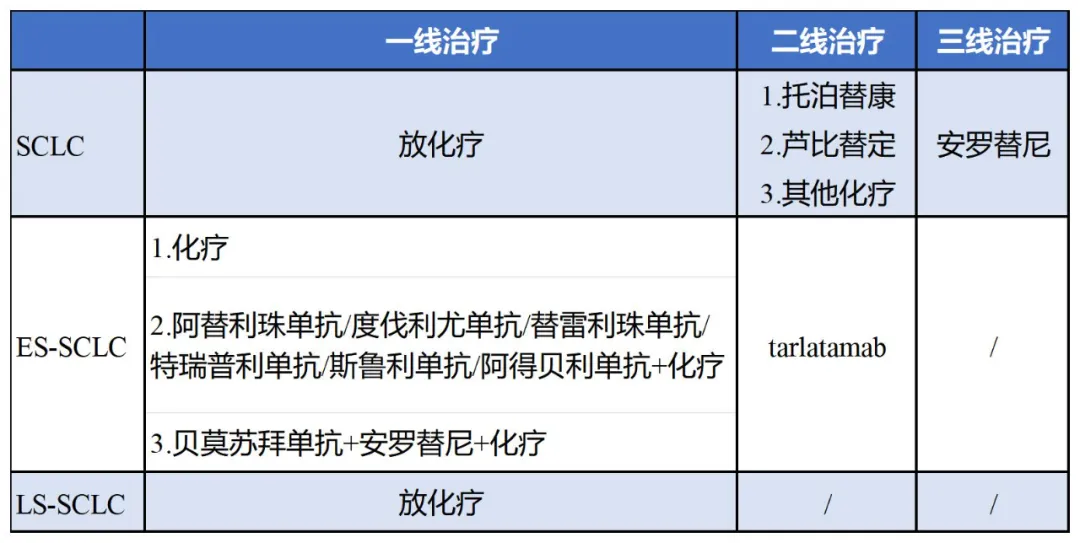 目前,放化疗仍然是SCLC患者的标准治疗。放化疗虽有效,但SCLC患者很快便会耐药,导致疾病进展。随着免疫疗法的兴起,PD-(L)1药物已成为SCLC的一线治疗方案,但也仅限于广泛期SCLC(ES-SCLC,占比约2/3)。