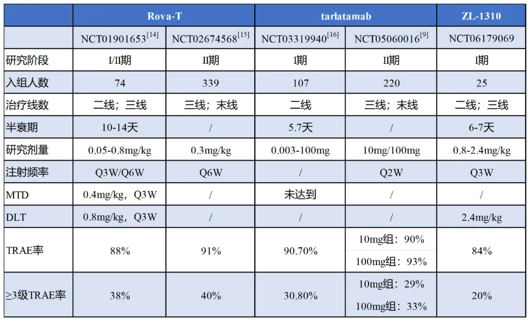 Rova-T、tarlatamab和ZL-1310早中期安全性数据概览
