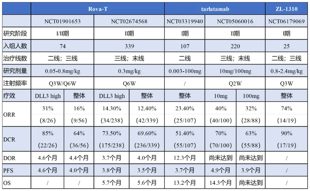Rova-T、tarlatamab和ZL-1310早中期疗效数据概览