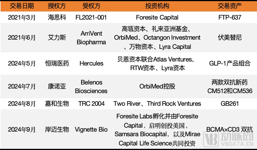 部分国内Biotech参与的NewCo 数据来源:动脉橙数据库