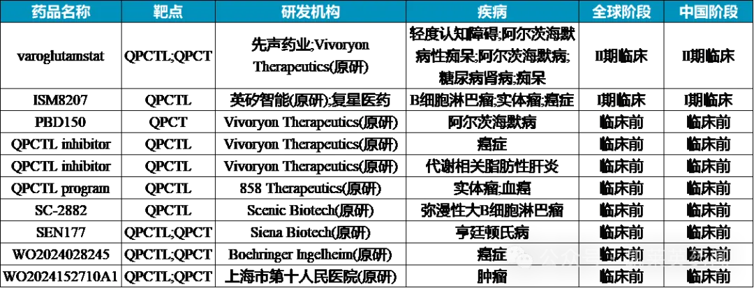 据不完全统计,目前在研的QPCT/QPCTL药物有十种。