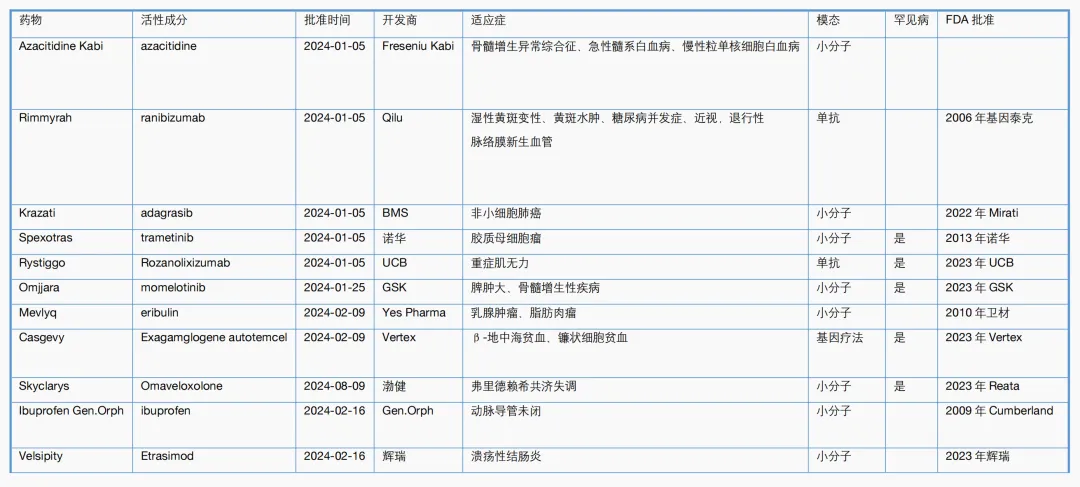 图3. 2024年1至8月FDA批准孤儿药情况