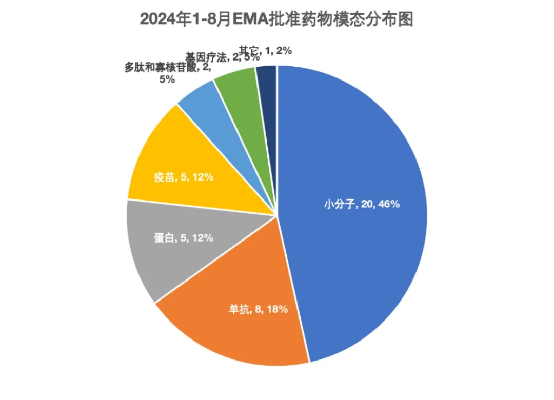 图1. 2024年1至8月EMA批准药物模态分布图。