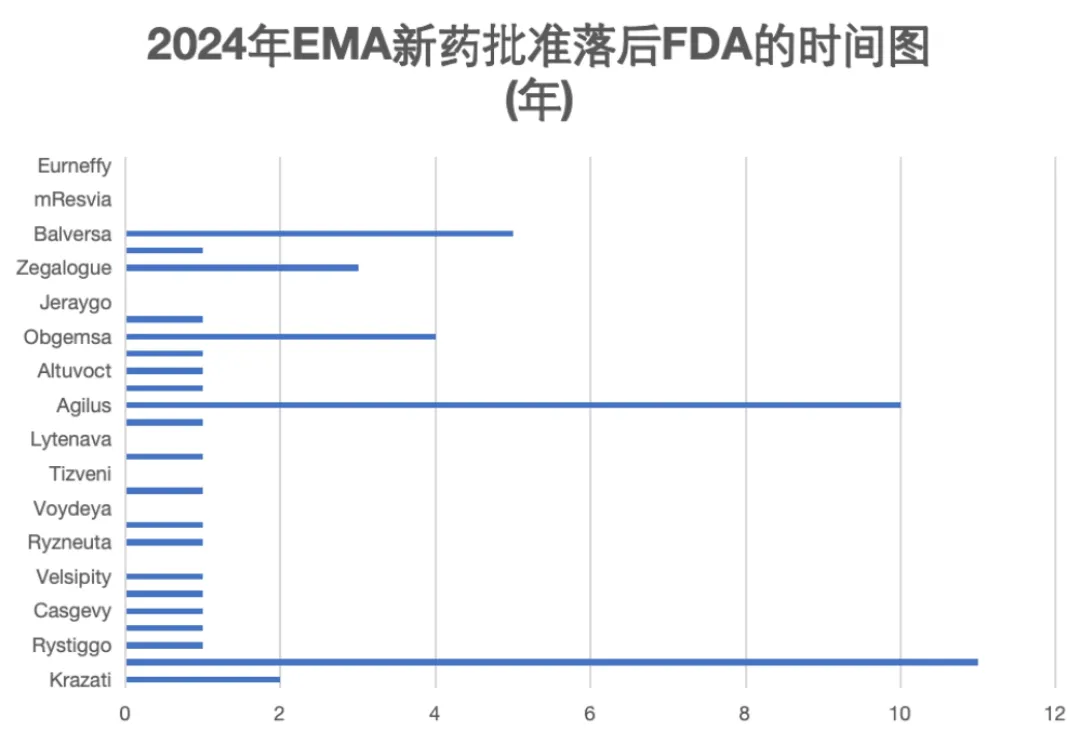 图4. EMA 2024年迄今为止批准新药落后FDA的时间图