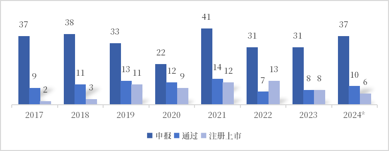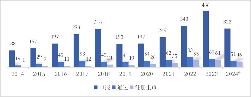 注:统计时间截至2023年,资格通过率=审查通过数量/受理申请数量,成功上市率=批准上市数量/审查通过数量
