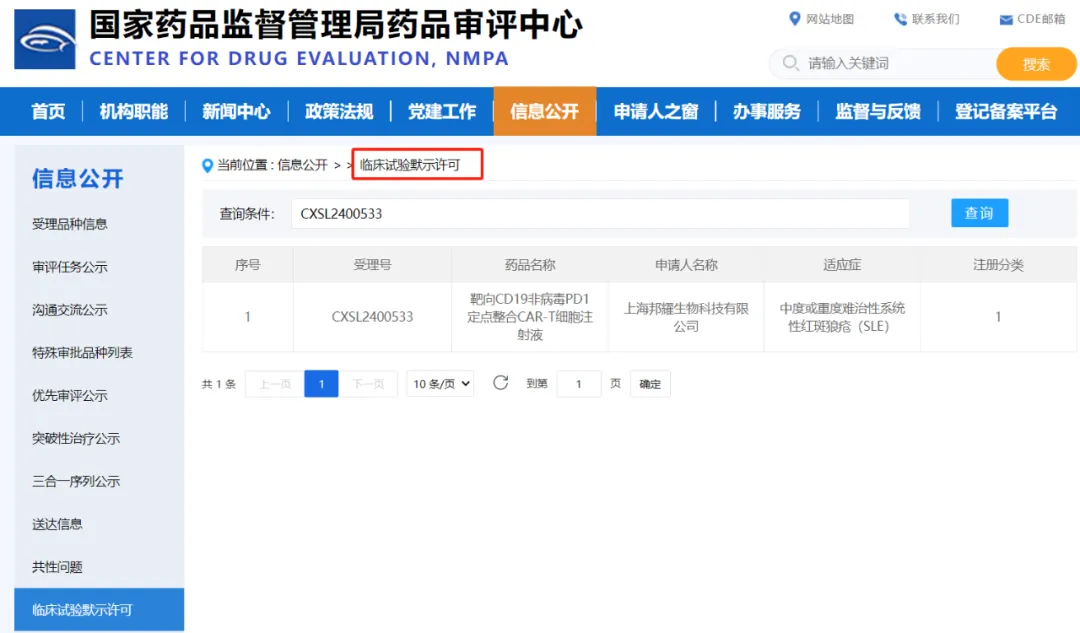 CDE官网获批截图