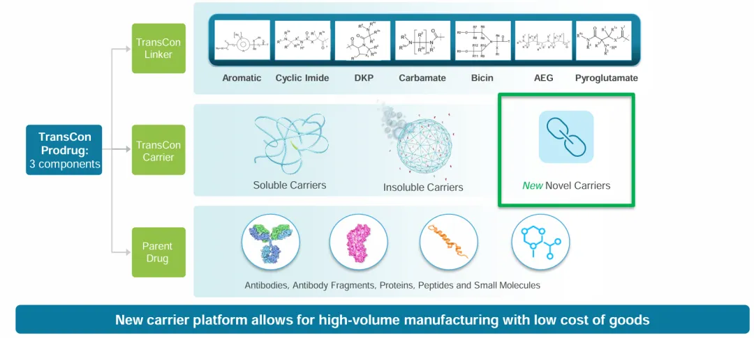 TransCon载体分为系统性载体和局部载体,这些载体通常为PEG或者一些天然或者合成的多聚合物。公司的三款候选药物TransCon hGH、 TransCon PTH和TransCon CNP载体均为PEG的。局部的载体可以使药物在局部高浓度的释放,从而增加药物的治疗窗口。