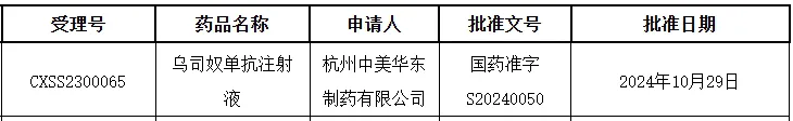 表1:2024年10月中美华东获批临床的新药情况(含合作项目)