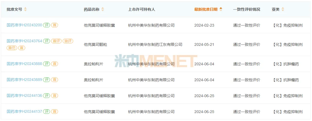 今年以来,中美华东已陆续获批了3个仿制药新品,其中他克莫司颗粒为国内首仿。目前公司还有6个仿制药新品报产在审,有望继续扩大公司在免疫抑制剂、抗肿瘤药、全身用抗真菌药市场的产品矩阵,还将在血脂调节剂市场迎来新突破。