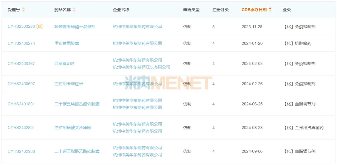 据米内网预测,中美华东报产在审的4款新药中,索米妥昔单抗注射液有望在2024年年底前获批,而瑞玛吡嗪注射液、迈华替尼片、注射用利纳西普或将在2025年上半年迎来好消息。