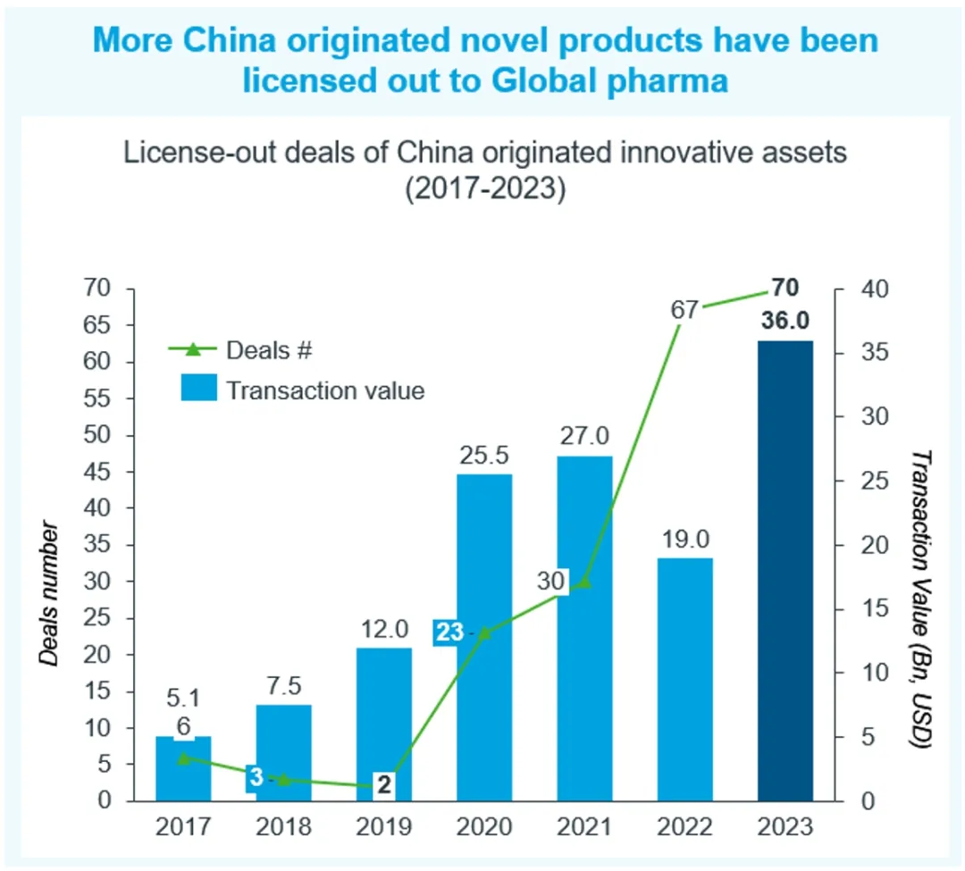 图1:2017~2023年中国创新药对外授权趋势变化