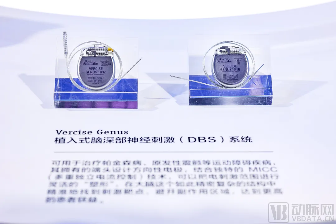 在进博会上,MNC企业展示了他们在神经调控领域的创新成果。波士顿科学展出了新一代Vercise Genus植入式脑深部神经刺激(DBS)系统,该系统具有精准、可视、长效三大特点。