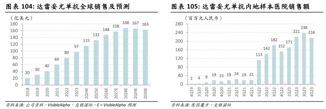 根据Evaluate预测,Darzalex有望在今年取得近120亿美元的营收,跻身百亿美元俱乐部,并预计2028年销售额达170.22亿美元。VisibleAlpha也预测Darzalex最终销售峰值将达到166亿美元。