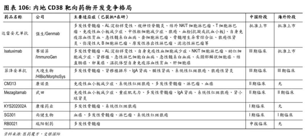 CD38单抗赛道的“后来者”还有不少,渤健/天境生物的Felzartamab(菲泽妥单抗)、武田制药的Mezagitamab等也在加速追赶,形成“一超多强”的市场竞争格局。