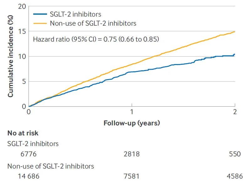 基于此,来自丹麦血清研究所、瑞典罗林斯卡学院、丹麦哥本哈根大学的研究团队进行了一项“真实世界研究”分析,超过2万人的研究证实,SGLT-2抑制剂可将HFrEF患者全因死亡风险降低25%,证实了SGLT-2抑制剂在真实临床环境和关键临床亚组(包括糖尿病和非糖尿病患者)中的有效性。该研究结果发表于《英国医学杂志》(The BMJ)。