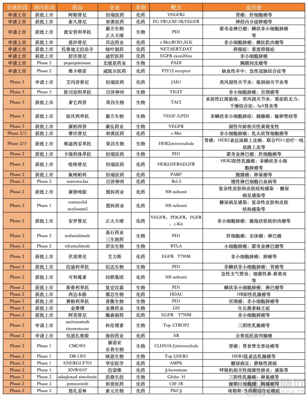 部分国际临床进度靠前的国产创新药,根据公开信息整理