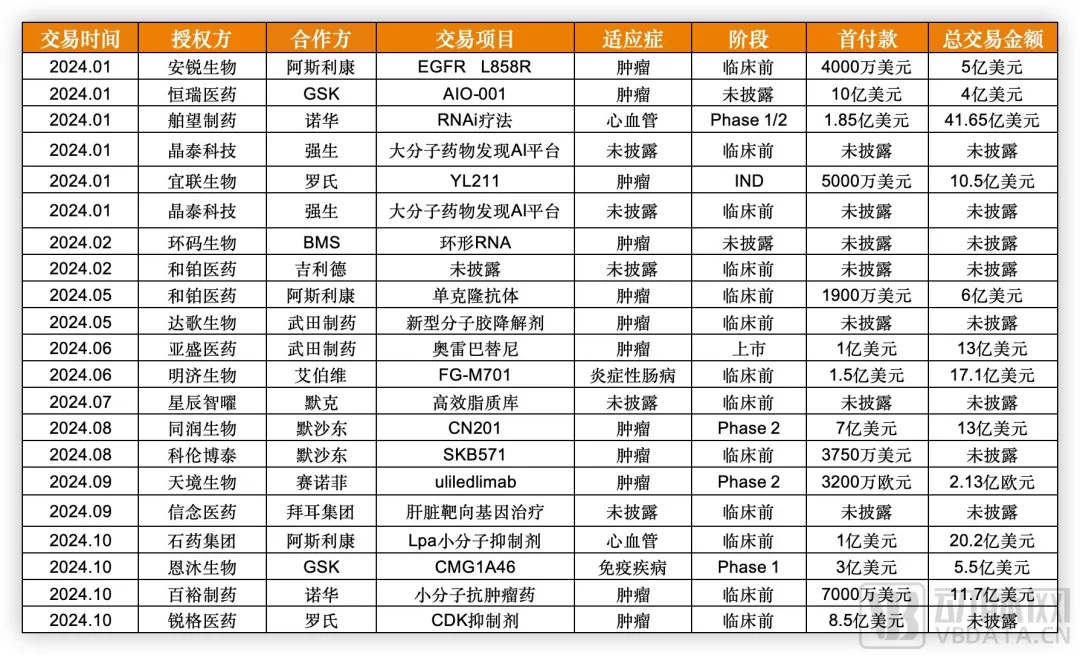 今年MNC与中国资产部分BD交易情况,根据公开信息收集整理