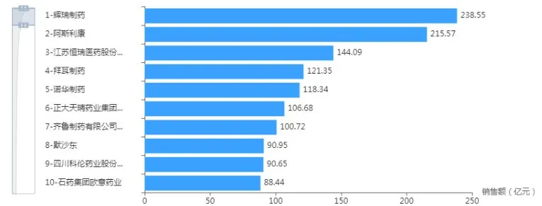 图2 2023年企业化药销售额TOP10 图片来源:药智数据