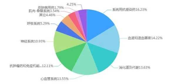 随着人们对健康的重视程度不断提高,不同适应症的药品需求量增加,促进了化学制药行业的发展。特别是在仿制药一致性评价和带量采购政策双重推动下,化学药品制剂行业集中度进一步提高,这可能使得不同适应症的药品在市场上的竞争力更加均衡,导致了化药适应症销售额较为平均的局面。