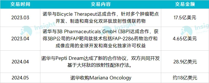 近年诺华围绕核药达成的交易