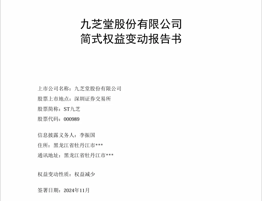 在此背景下,九芝堂的易主拉开了帷幕。11月12日,本次权益变动完成后,辰能创投将成为公司的控股股东,黑龙江省国资委将成为公司实际控制人,李振国则成为公司第二大股东。