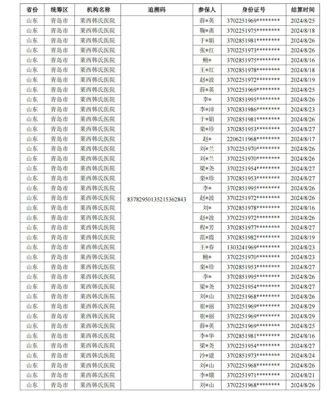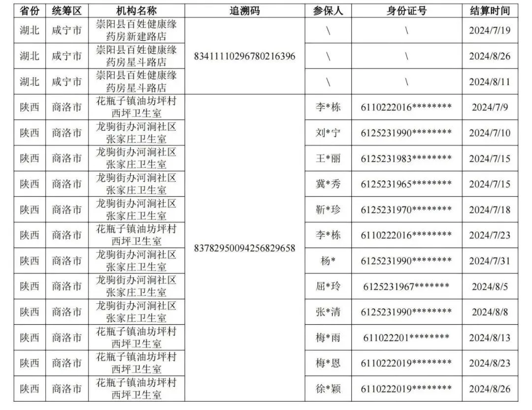 2)疑似回流药或用同一药品盗刷不同参保人医保卡(同一药品追溯码在不同定点医药机构发生结算,且时间跨度较大)