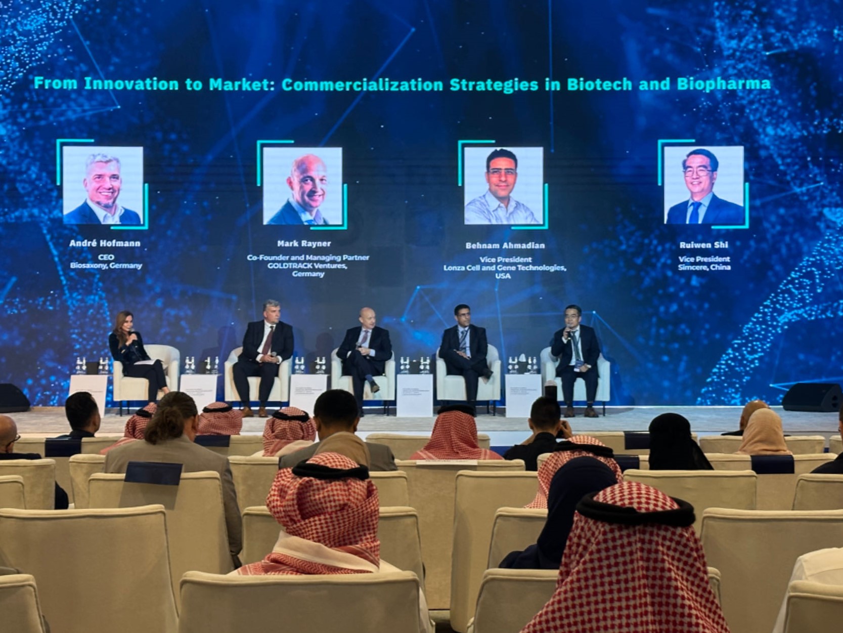 出访期间,代表团还受邀参加了“2024利雅得全球医疗生物技术峰会”(Riyadh Global Medicine Biotechnology Summit,以下简称“峰会”),峰会由沙特国民警卫队卫生事务部和沙特投资部共同主办,是沙特最高规格的政府活动平台之一,吸引了来自中国、美国、英国、韩国、日本等国家的全球领导者、专家、生物技术和制药行业知名企业、学术机构组织的广泛参与,旨在提供更多的投资机会并推动沙特与优质企业合作,助力沙特成为全球生物医药创新集聚地。代表团成员先声药业集团副总裁史瑞文应邀参加了“生物技术与生物制药的商业化战略”主题讨论,就医药领域的前沿创新和最新趋势,如何推动合作与协调,及在沙特开展业务面临的挑战等问题进行了分享,向沙特展示了中国医药创新产业的实力与潜力,也向世界传递了中国医药产业的创新精神和国际视野。