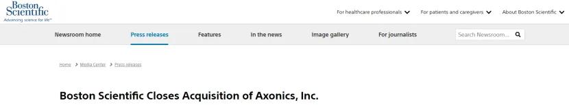“在过去的十年里,Axonics为膀胱过度活动和尿失禁患者提供了有意义的创新,这令人印象深刻。”波士顿科学公司泌尿外科高级副总裁兼总裁Meghan Scanlon表示,“通过完成此次收购,我们很高兴欢迎Axonics团队加入波士顿科学公司。Axonics产品组合的加入使我们能够扩展到骶骨神经调节,这是我们泌尿外科业务的高增长领域,同时为世界各地正在根据其生命阶段和尿失禁严重程度寻求量身定制治疗方案的患者带来全面的产品组合。”