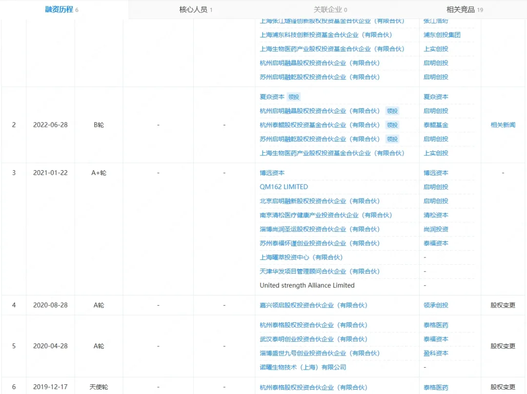 包括最近的一次C1轮融资,从2019年创立至今五年时间里,礼新医药已先后获得六轮融资,受到泰格医药、盈科资本、启明创投、博远资本等十多家投资机构的青睐。