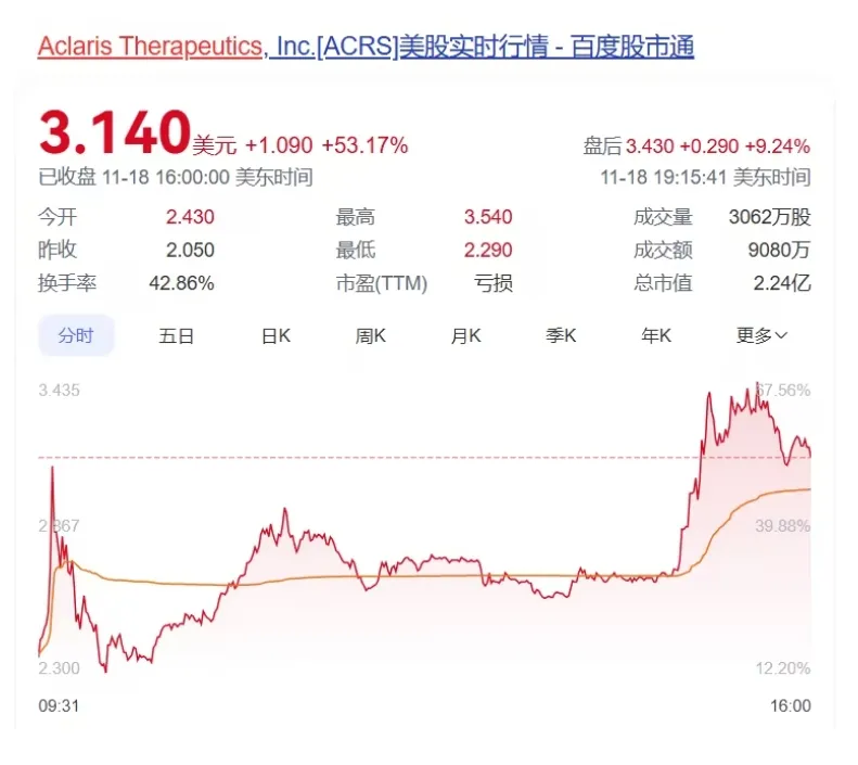 受此消息影响,Aclaris Therapeutics股价上涨53%。