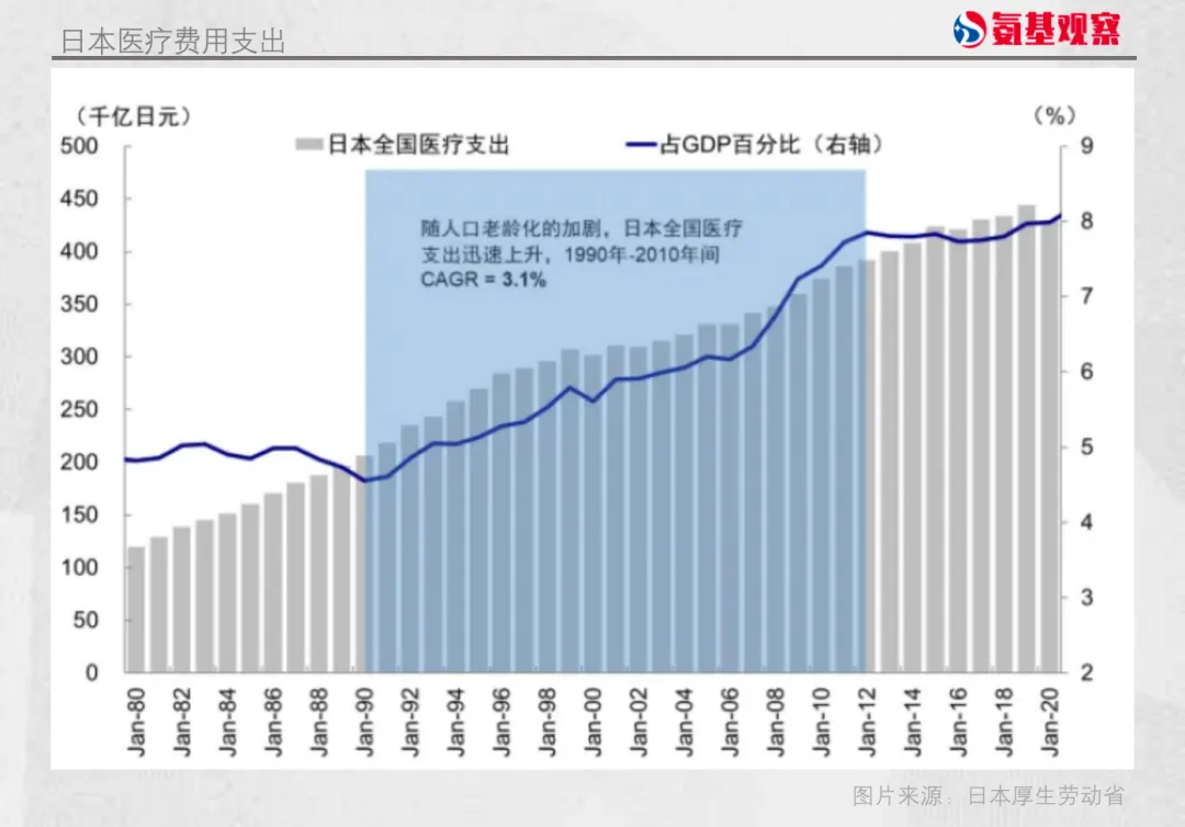 这也使得,过去几十年,日本的医疗支出在持续增长,日本医疗也是全球医疗系统中的佼佼者。