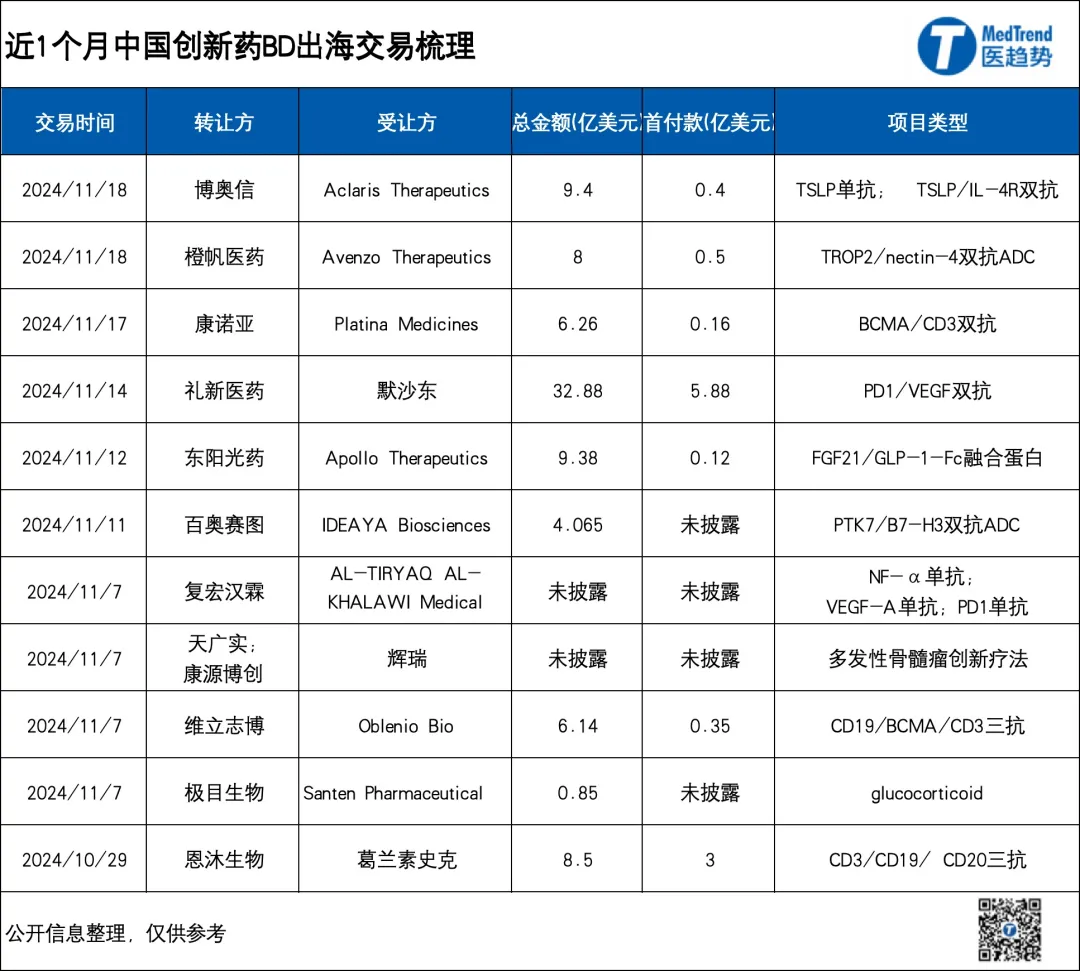 近1个月时间,中国创新药跨境BD交易尤其密集。