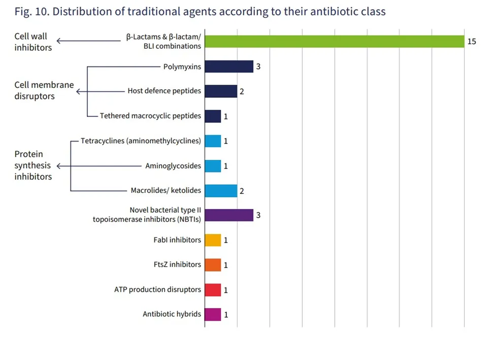 ▲截至2023年12月31日,传统AMR药物作用机制的分布(图片来源:参考资料[1])