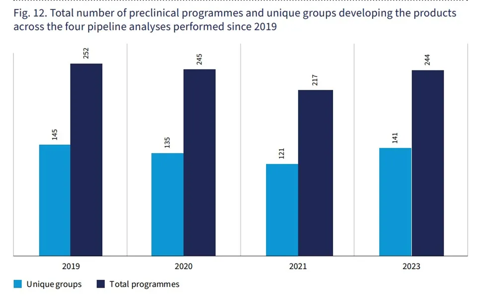 ▲截至2023年12月31日,自2019年以来临床前项目和开发机构的数量(图片来源:参考资料[1])