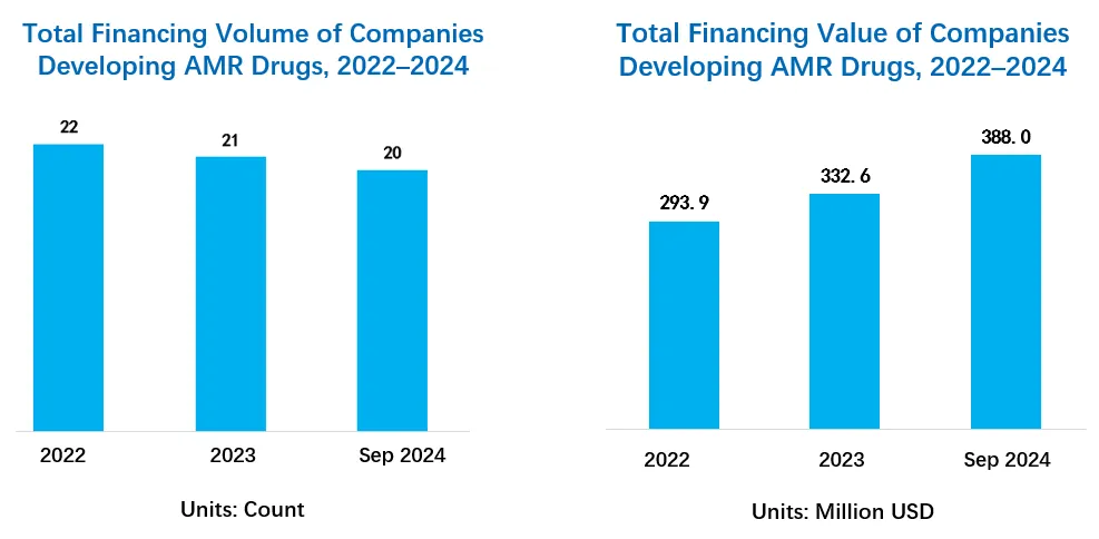 ▲专注于AMR药物研发公司的数量(左)与总融资额(右)数据(图片来源:药明康德内容团队)
