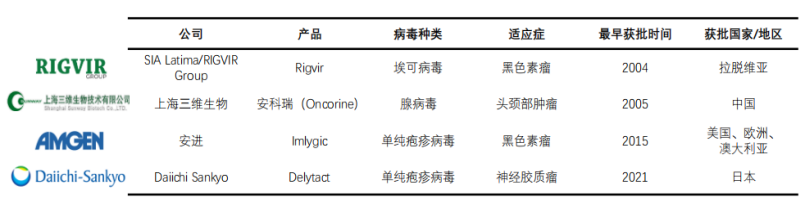 目前已上市的4款溶瘤病毒产品一览表