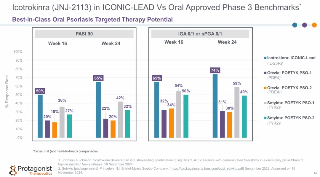 除了ICONIC-LEAD和ICONIC-TOTAL研究以外,Icotrokinra还有两项全球性III期研究(ICONIC-ADVANCE 1和ICONIC-ADVANCE 2研究)正在进行中。这两项研究纳入的患者数超过1500例,旨在对比Icotrokinra、氘可来昔替尼和安慰剂治疗中度至重度斑块状银屑病的安全性和有效性。强生还计划在2025年年初启动Icotrokinra治疗银屑病关节炎的ICONIC-PsA研究。