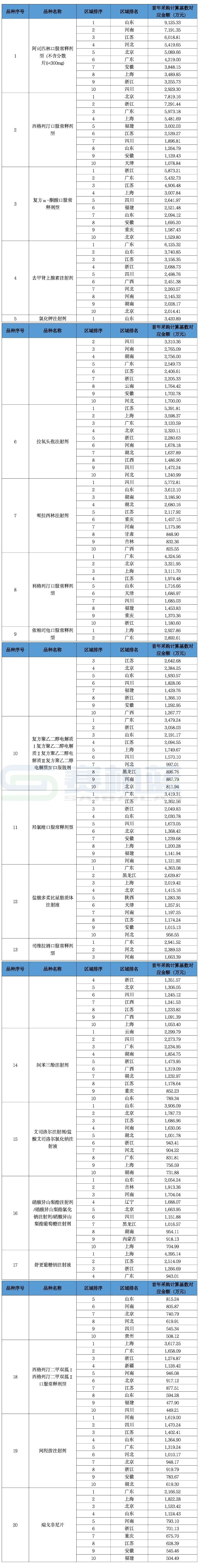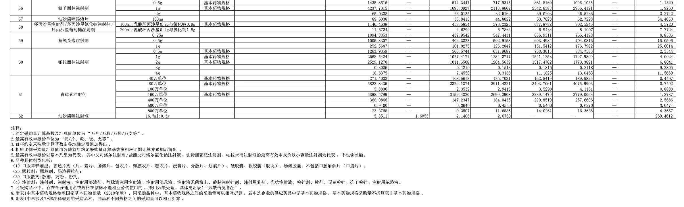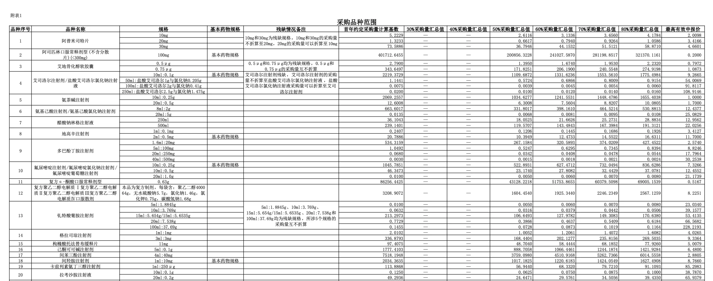 首年约定采购量基数对应最高有效申报价金额20个较大品种及区域采购金额具体情况如下: