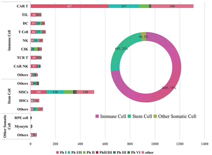 今年10月,清华大学、国家药监局创新药物临床研究与评价重点实验室等机构的多名研究者于《Journal of Hematology & Oncology》发表了一篇文章,文中提到在2005年1月1日至2024年8月1日期间,我国注册的细胞治疗临床试验达到2794项。全球范围内,细胞治疗领域的研究和商业化显著加速。