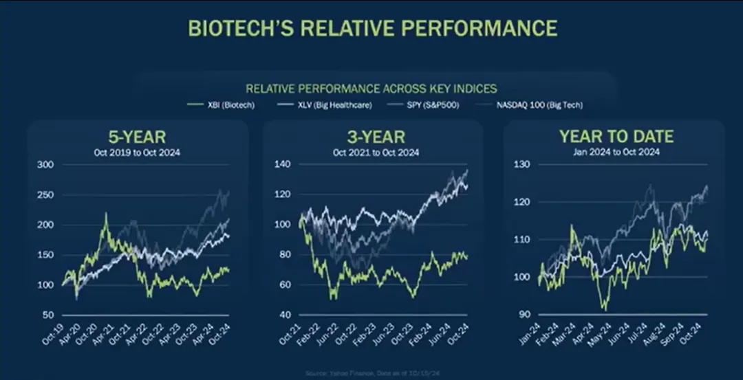 最后,我想谈谈利率问题。9月,美联储将利率降低了50个基点,预计到明年夏天将降低约200个基点。这个3%的目标利率对生物技术和其他研发密集型产业非常有利——鉴于这类行业的估值是基于遥远的未来现金流。重要的是,这个目标利率也将帮助资金从场边回来,重新进入股票市场。